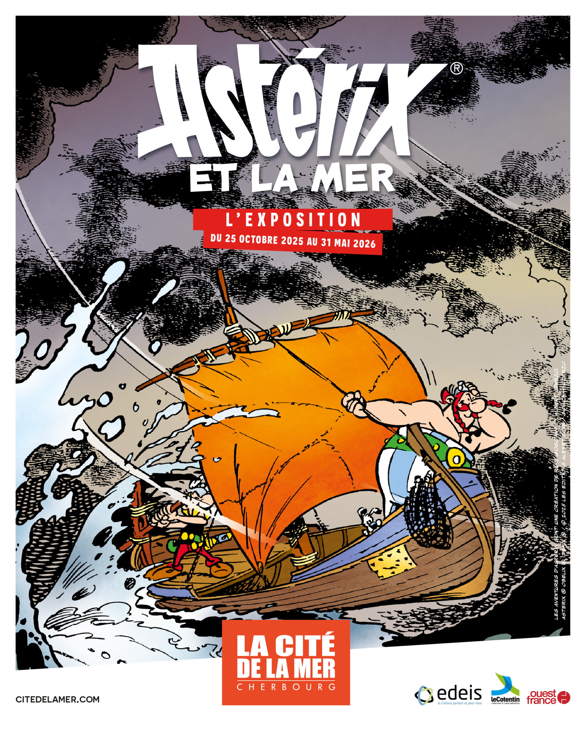 Après avoir navigué aux quatre coins du globe, Astérix et Obélix posent leurs bagages en Normandie ! C’est à La Cité de la Mer, à Cherbourg au cœur du Cotentin, que nos irréductibles Gaulois feront escale du 25 octobre 2025 au 31 mai 2026, à l’occasion de l’exposition « Astérix et la mer ».